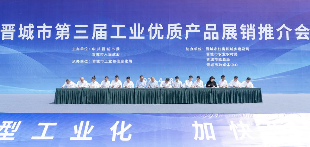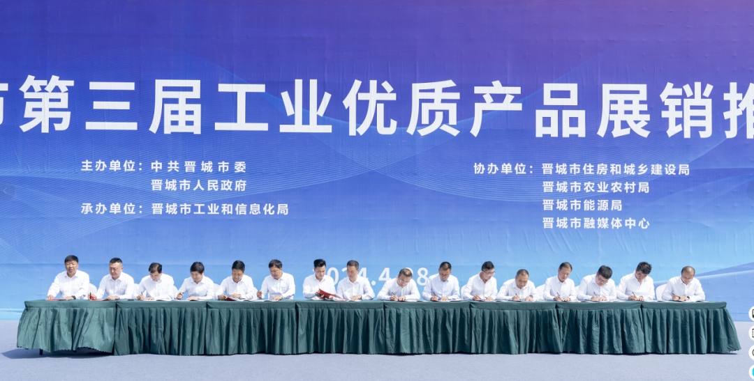 4月28日上午,晋城市第三届工业优质产品展销推介会在金凤凰广场开幕!32家企业现场签约,签约金额达15.73亿元!
