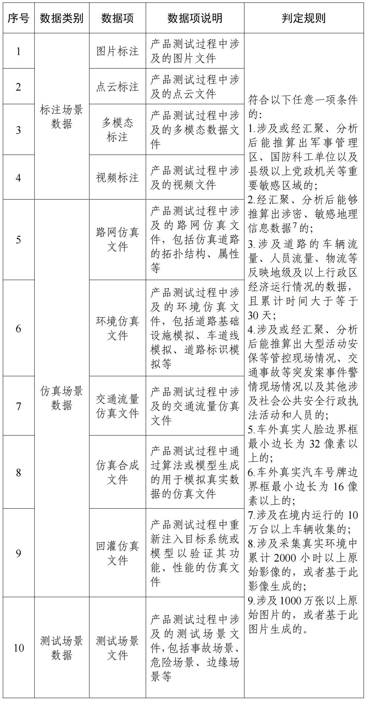 汽车数据处理者开展产品仿真、场地和实际道路测试过程中,收集和产生的标注场景、仿真场景、测试场景数据。