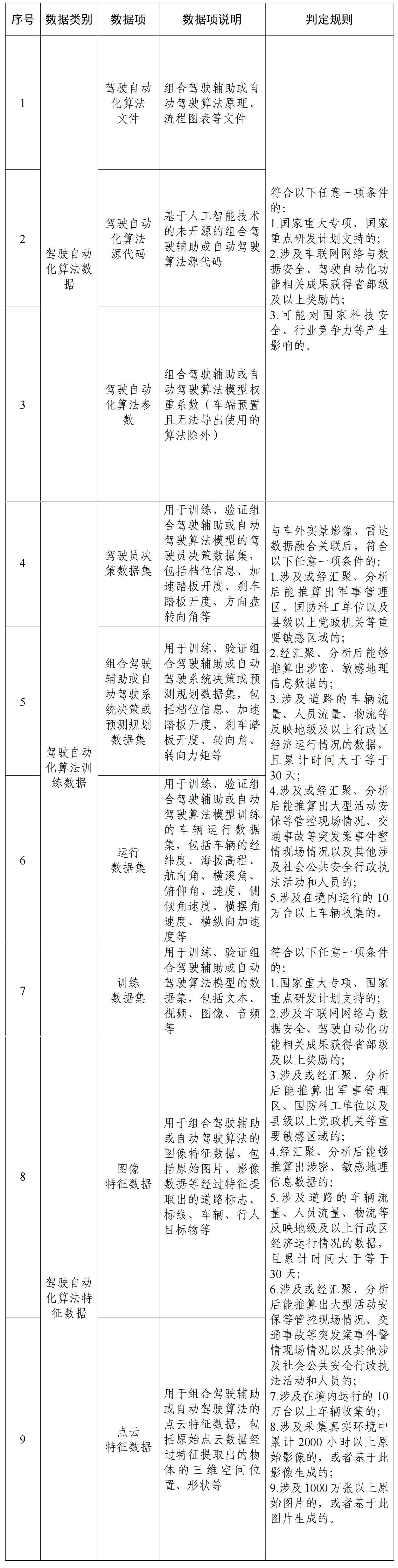 汽车数据处理者在组合驾驶辅助或自动驾驶功能开发、部署、应用等过程中,收集和产生的算法、训练数据、特征数据。
